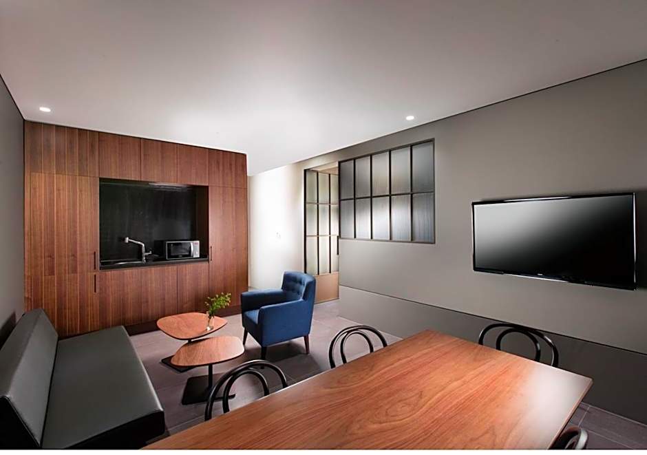 Guests will have a special experience as the suite features a hot tub. This spacious suite consists of 1 living room, 1 separate bedroom and 1 bathroom with a bath and bathrobes. The air-conditioned suite provides a flat-screen TV, soundproof walls, a wardrobe, a safe deposit box as well as city views. The unit offers 3 beds.